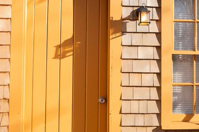The structure invites a slower pace. Approaching the wooden door, framed by simple trim and softened by the autumn leaves gathered along the roofline, one senses that this is a space meant not only for work, but for clarity. Inside, the office expands into a room filled with light. A bank of windows stretches broadly across the front wall, their panes glowing in the daylight as they offer a view outward to the grounds. Here, the world outside becomes a companion rather than a distraction, a living landscape that shifts with the seasons and marks the passage of days.